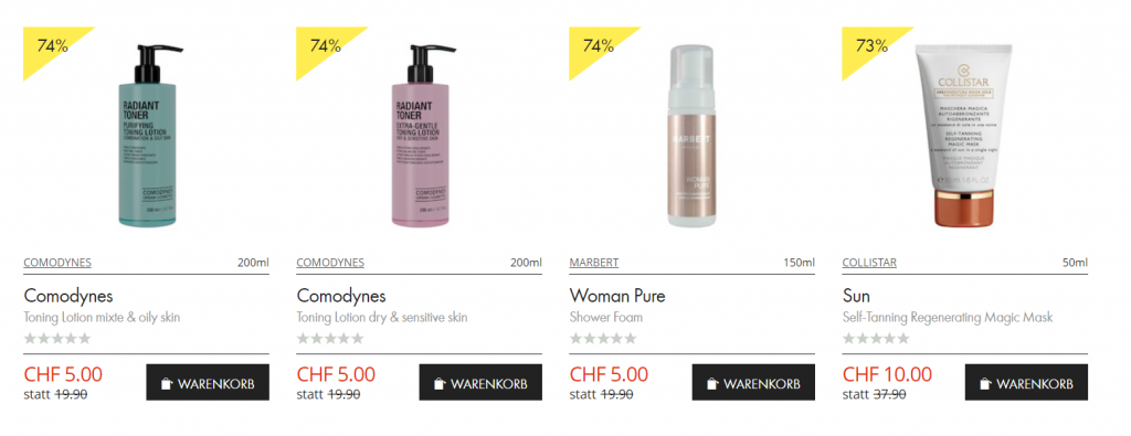 Bis und mit 29. Juli läuft bei der Impo der SALE. Es gibt bis zu über 80% Rabatt, einige Artikel gibt’s sogar für einen Franken. Besonders spannend natürlich, weil die Import Parfumerie gratis liefert, egal für wie viel man bestellt.