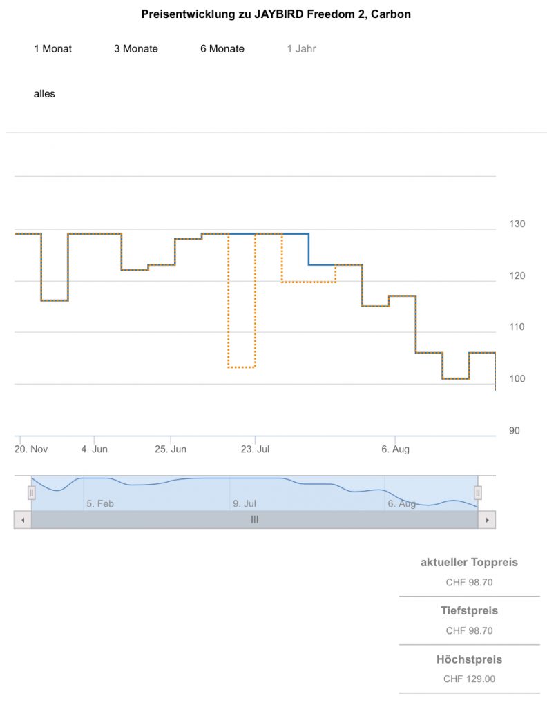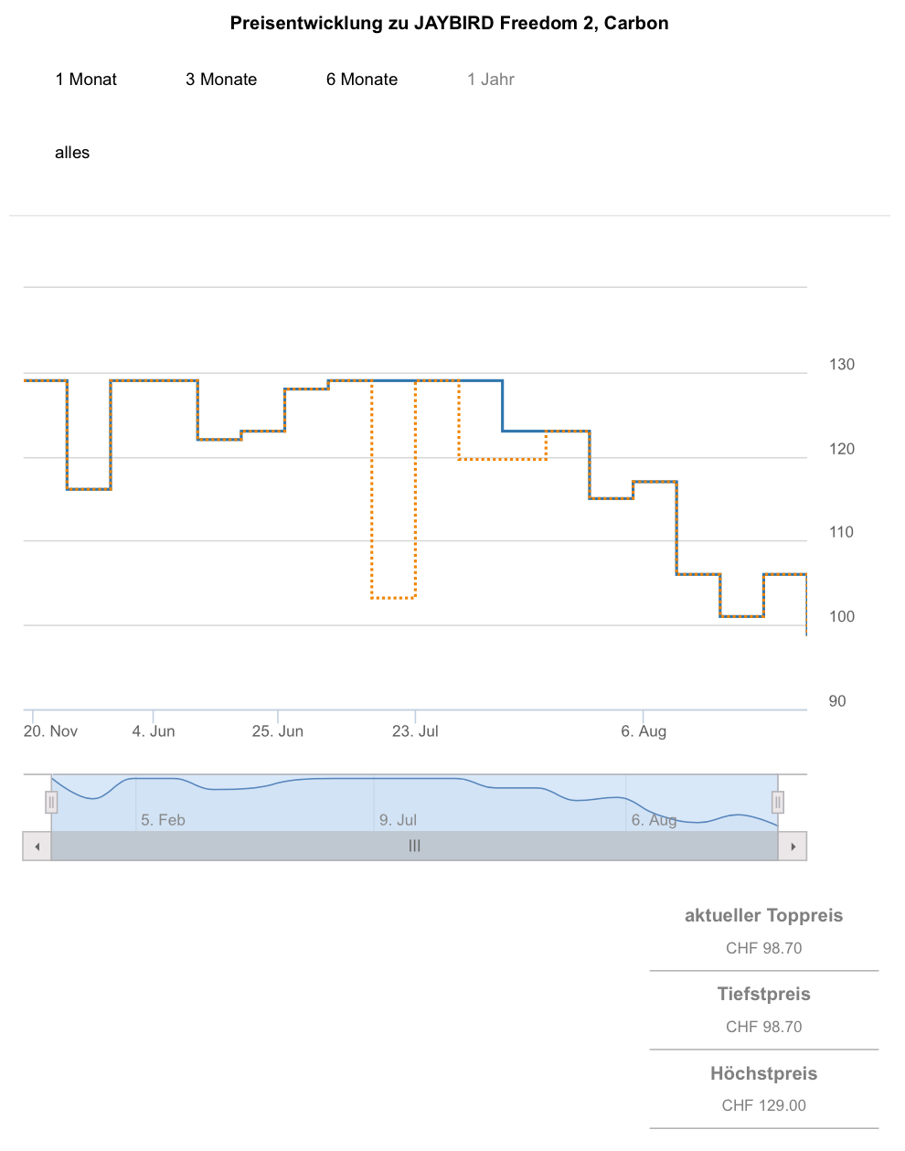 Gemäss toppreise gab es die Kopfhörer bislang nie günstiger als für 101.- CHF, der zweitbeste Preis liegt aktuell bei 129.- CHF.