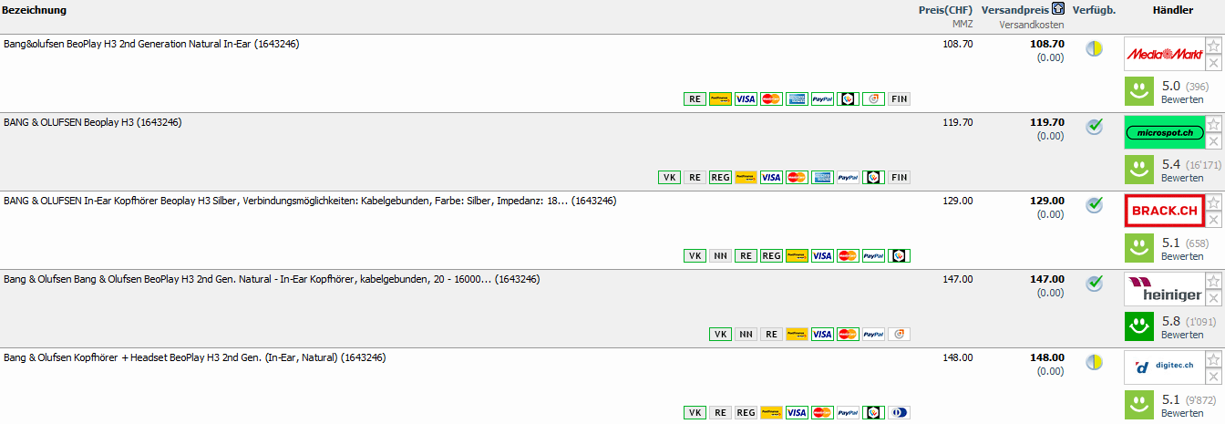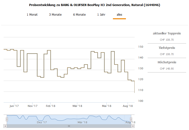 Gemäss toppreise gab es die Kopfhörer bislang nie günstiger als für 119.70 CHF, was zeitgleich auch der zweitbeste Preis ist.