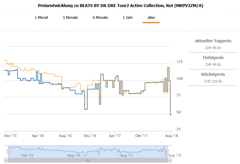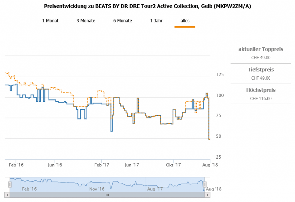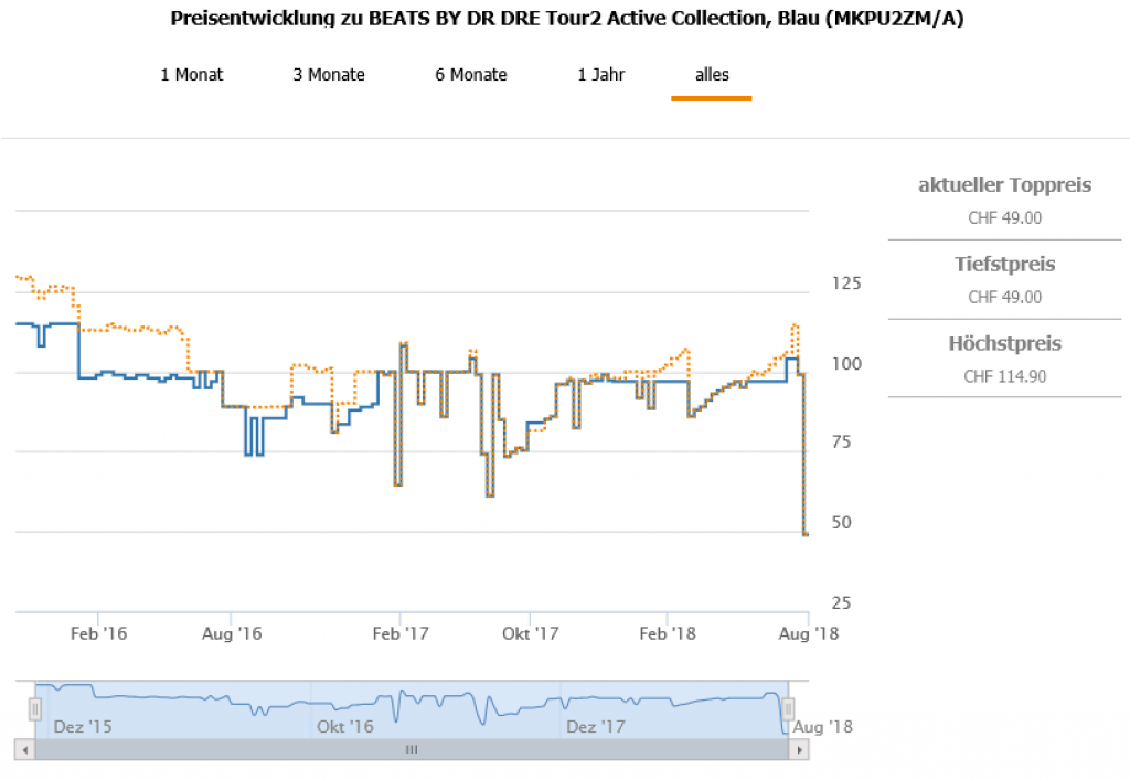Gemäss toppreise gab es die Kopfhörer bislang noch nie günstiger als für 57.15 CHF (über alle Farben), der zweitbeste Preis liegt aktuell bei 105.- CHF.