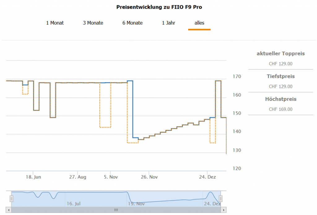 Gemäss toppreise war der bestprice bislang bei 135.20 CHF, der zweitbeste Preis aktuell liegt bei 169.- CHF.