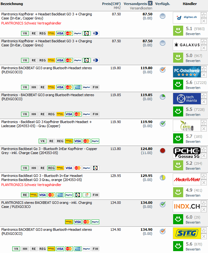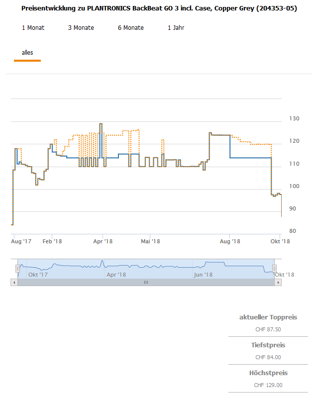 Gemäss toppreise gab es die Kopfhörer anscheinend am Einführungstag für 84.- CHF (könnte aber auch ein Fehler sein), denn ansonsten gab es die Kopfhörer nie für unter 100.- CHF. Der zweitbeste Preis liegt aktuell bei 119.80 CHF.