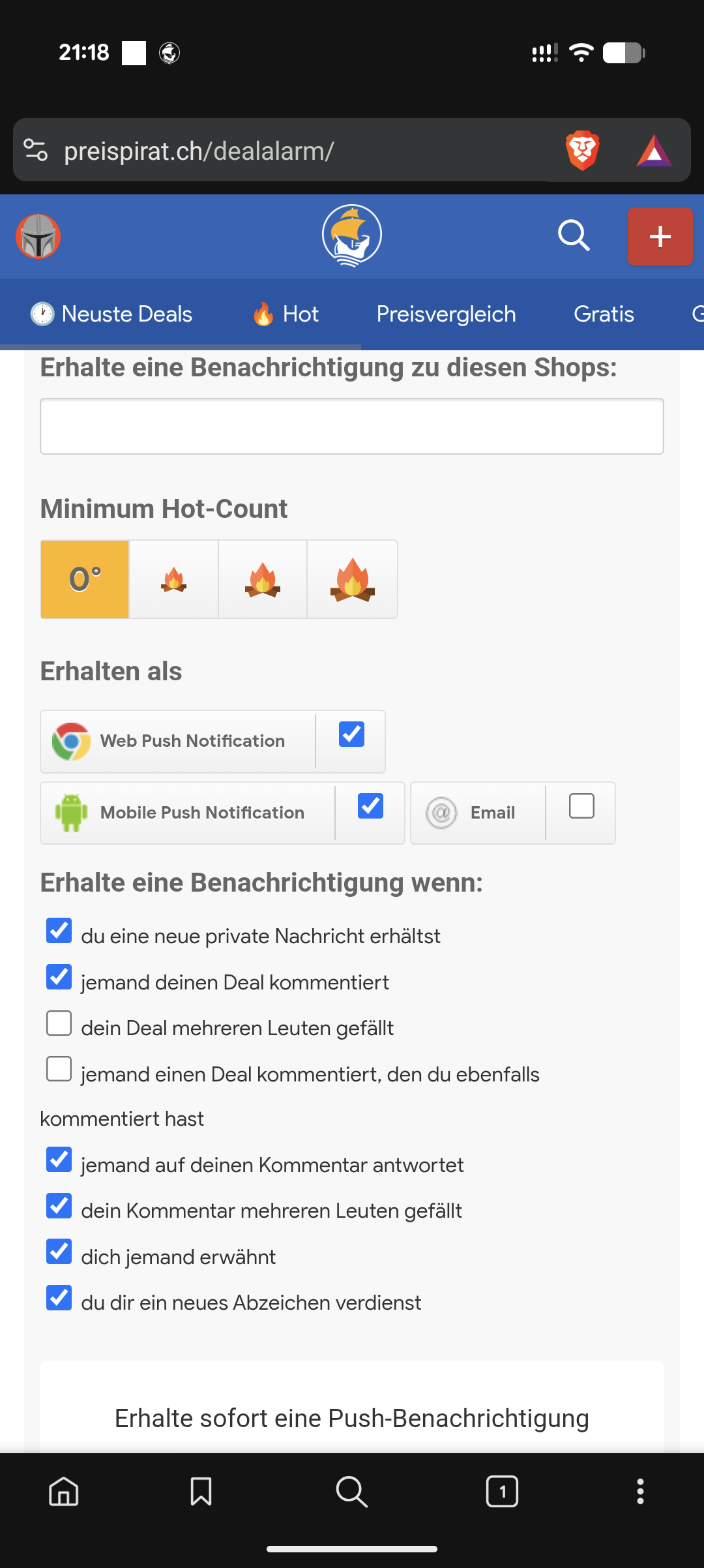 Ehh, habe mich mit Brave angemeldet, dann Dealalarm im Brave nochmals gesetzt. Jetzt erhalte ich über APP und Brave eine push.. meeeege speziell. Jetzt klappt es mit dem Pixel. Evt. bei dir auch?