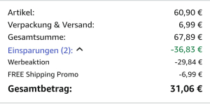 Also das mit der Gratislieferung stimmte mal nicht, werden 7 EUR dazugeschlagen.
