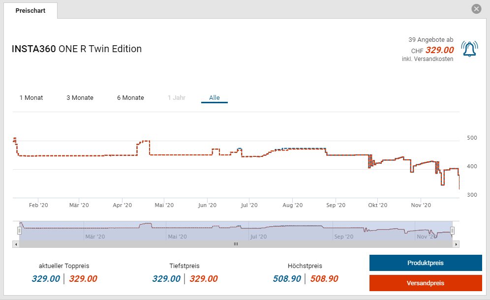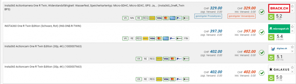 Bei Brack gibt es die INSTA360 ONE R Twin Edition Action Cam für den neuen Bestpreis von CHF 329.-. Der vorherige Bestpreis war CHF 344.-. Der zweitbeste Preis beträgt CHF 397.30.