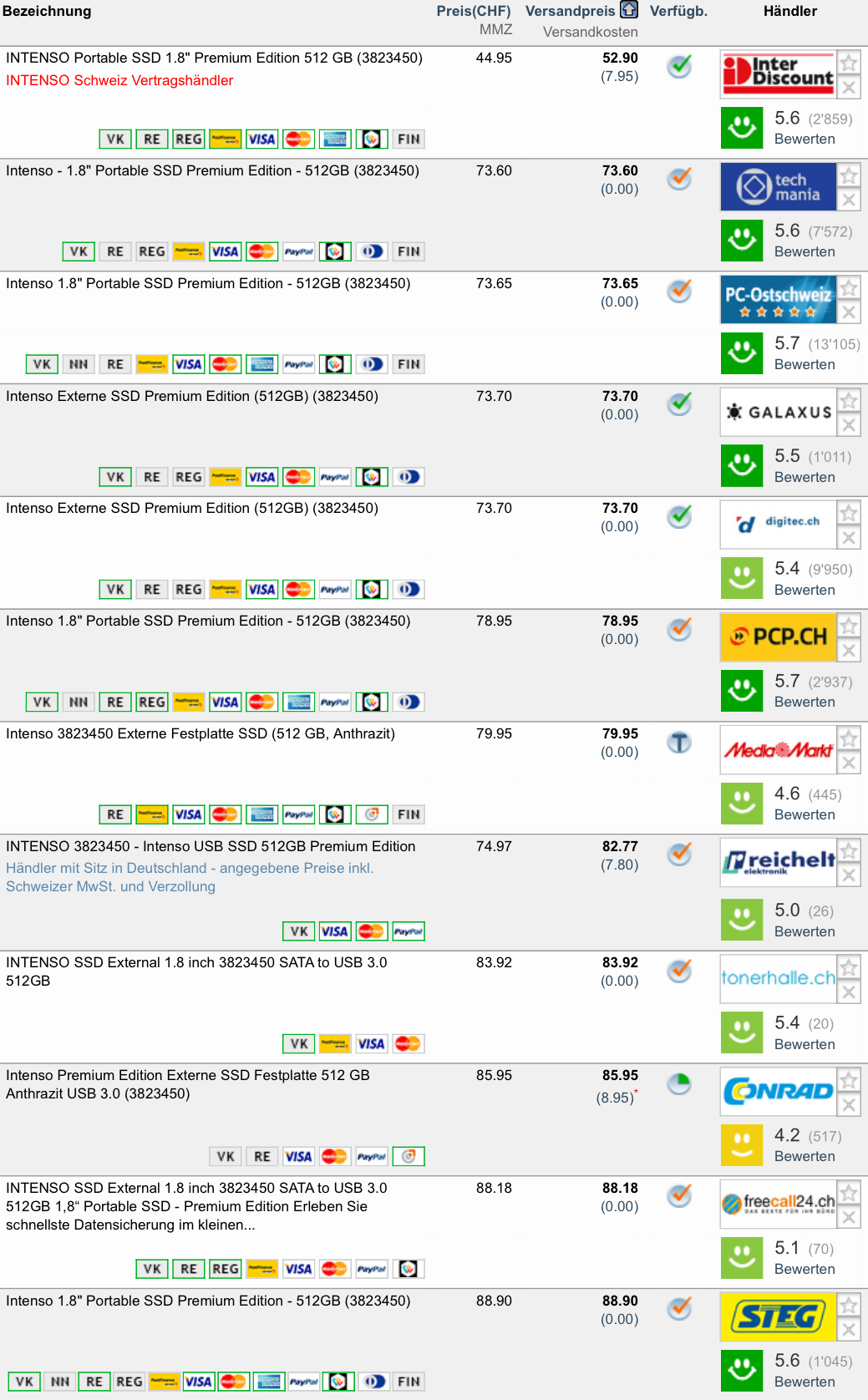 Bei interdiscount gibt es die externe SSD für 44.95 CHF, wenn ihr Filialabholung wählt.