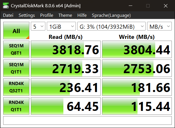 Das Zike funktioniert zwar am Thunderbolt 4 bei folgendem Test, ist aber nicht besonders schnell gegenüber dem Delock.