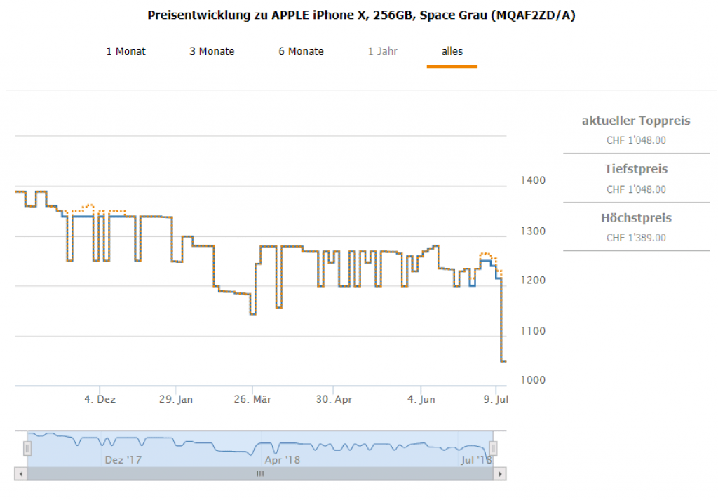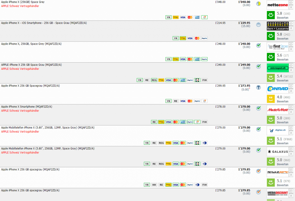Bei nettozone gibt’s das iPhone X in der Version Space Grey mit 256GB Speicherplatz für den neuen Bestpreis von CHF 1’048. Der nächstbeste Preis in der Schweiz beträgt CHF 1’229.95 Bisheriger Bestpreis war CHF 1’143.-