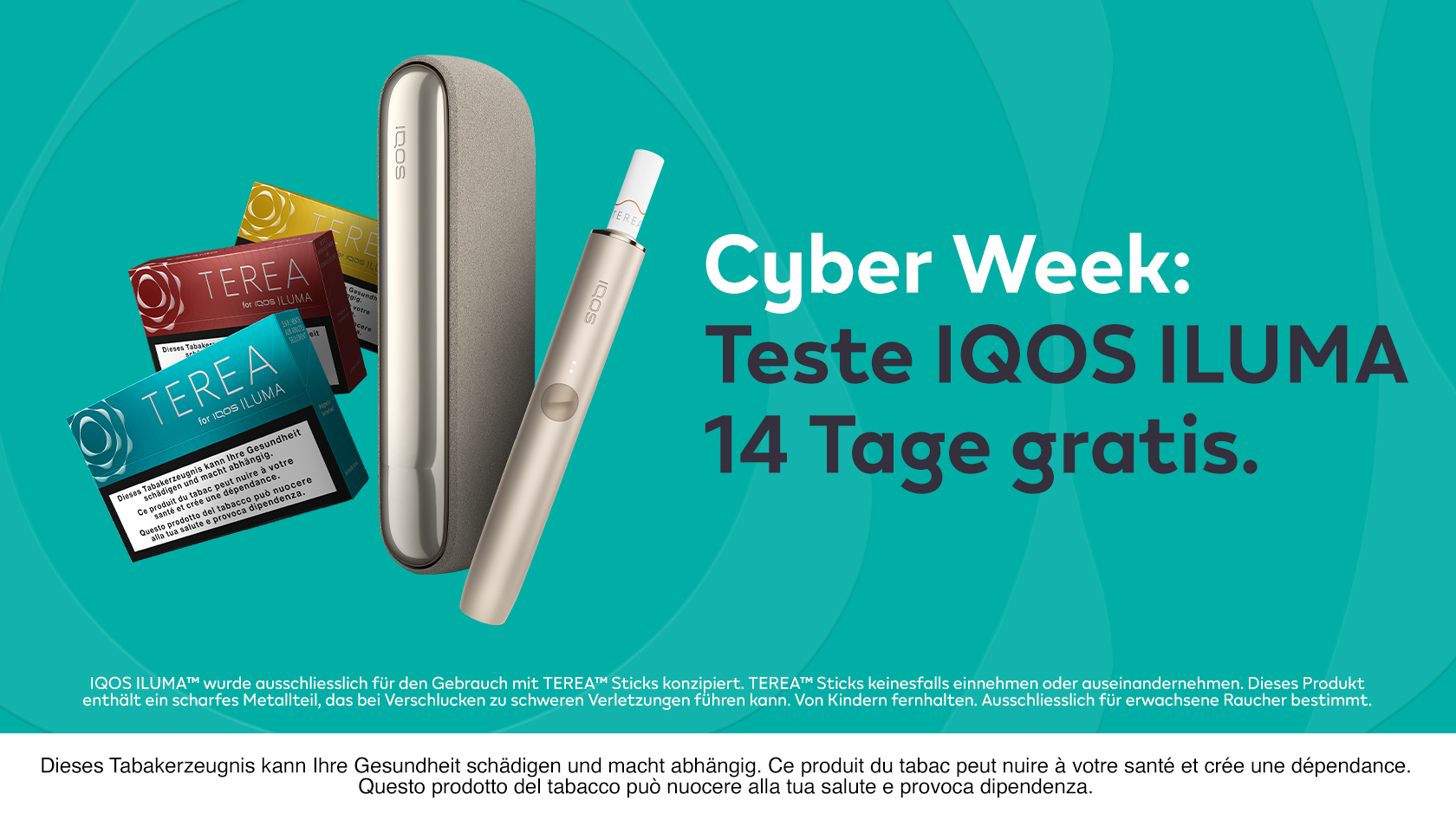 Sind sie auf der Suche nach einer rauchfreien Alternative zur Zigarette? Dann ist dieses Cyber-Week-Angebot das Richtige für Sie: Sie können IQOS ILUMA 14 Tage gratis testen. Bequem von zu Hause aus!