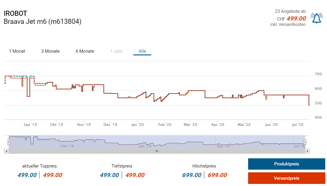 Bei microspot gibts derzeit den Wischroboter Braava Jet m6 von iRobot zum neuen Bestpreis von 499 Franken. Laut toppreise liegt der zweitbeste Preis derzeit bei 569 Franken mit 5 Jahren Garantie von myrobotcenter. Der bisherige Tiefstpreis lag zuletzt bei 525 Franken.