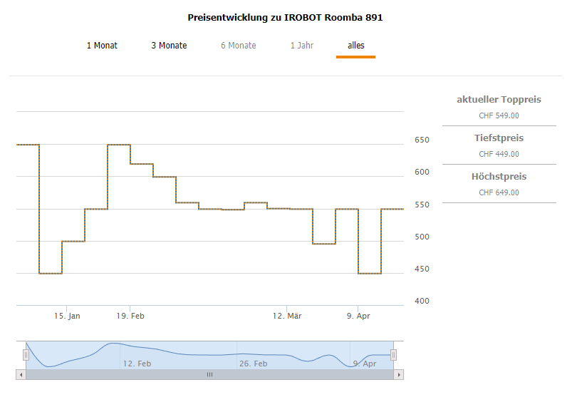 Den Staubsaugerroboter gab es bereits einmal für diesen Preis am 27.12.2017 und 9.4.2018 ansonsten bewegt sich der Preis immer zwischen 500 und 550.