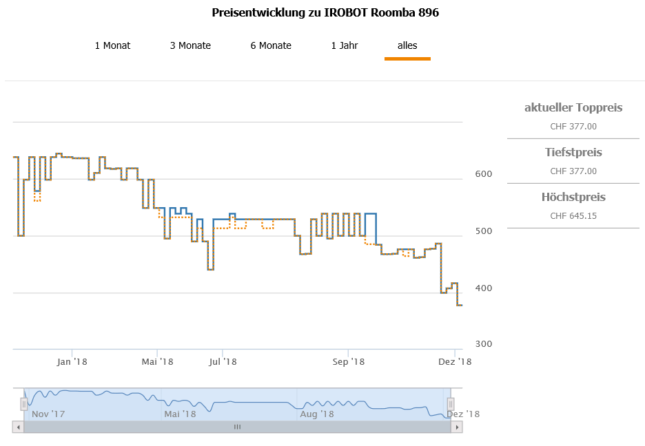 Bestprice bislang waren 399.- CHF, der zweitbeste Preis aktuell liegt bei 415.95 CHF.