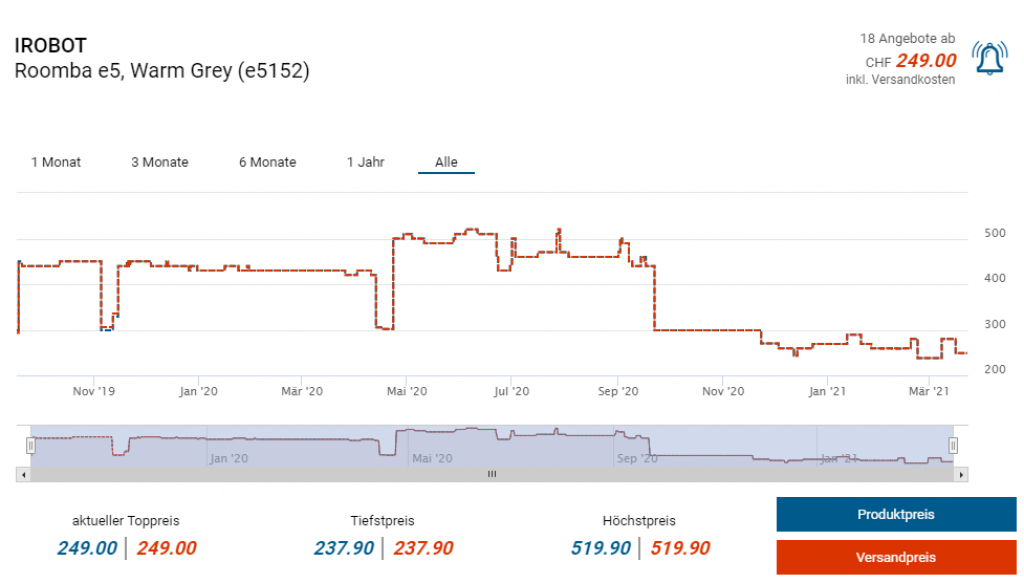 Bei nettoshop gibts derzeit den Saugroboter Roomba e5152 von iRobot zum neuen Bestpreis von 199 Franken! Um auf den Dealpreis zu kommen müsst ihr den angegebenen Bon anwenden. Laut Preispirat-Recherche lag der bisherige Bestpreis bei etwa 223 Franken, sonst würde es euch 249 Franken beim zweitgünstigsten Anbieter kosten.