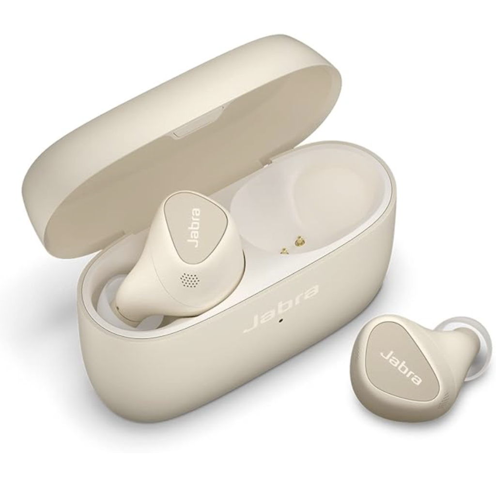 - Lieferumfang: 1x Jabra Elite 5 Bluetooth-Kopfhörer, Qi-zertifiziertes Ladecase, EarGels in 3 Größen, USB-C Ladekabel, Sicherheitsdatenblatt, 5g, Gold-Beige. In „Frustration-Free Packaging“