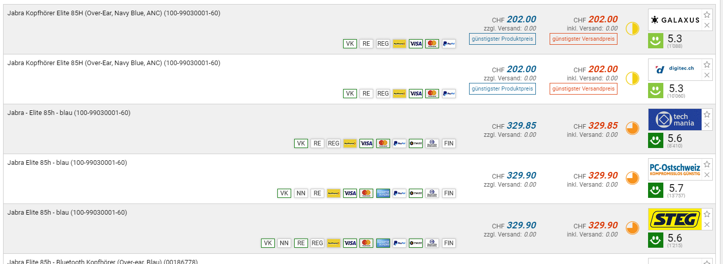Bei Galaxus und dem Partner Digitec gibt es die Jabra Elite 85H Kopfhörer für den neuen bestpreis von CHF 202.-. Der vorherige Bestpreis war CHF 215.90 und der zweitbeste Preis beträgt CHF 329.85.