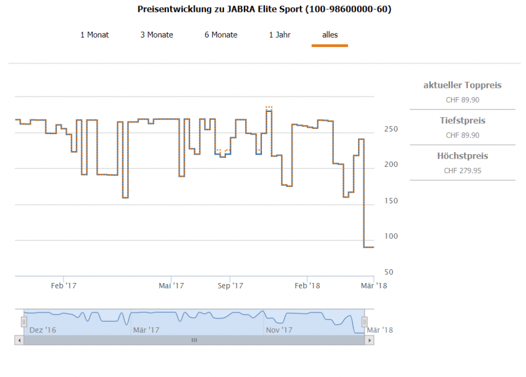 In der Schweiz gibt es die JABRA Wireless Sport Earbuds Elite auch bei Interdiscount für 99.90. Der Preis der Kopfhörer ist in den letzten Tagen sehr stark gesunken wie der toppreise Verlauf zeigt.