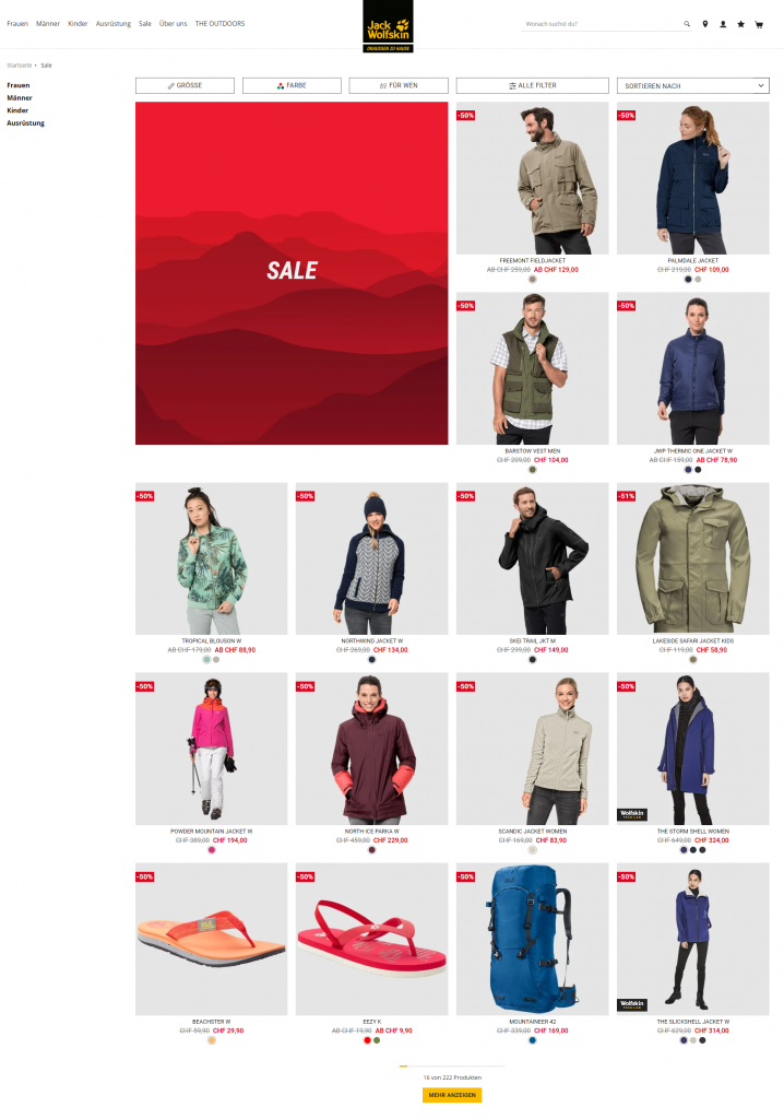 Aktuell gibt es bis zu 30% im Sale bei Jack Wolfskin. Bei einer Anmeldung zum Newsletter gibt es ebenfalls einen CHF 10.- Gutschein. Im Sale sind über 690 Produkte, es hat also genügend Auswahl 😀