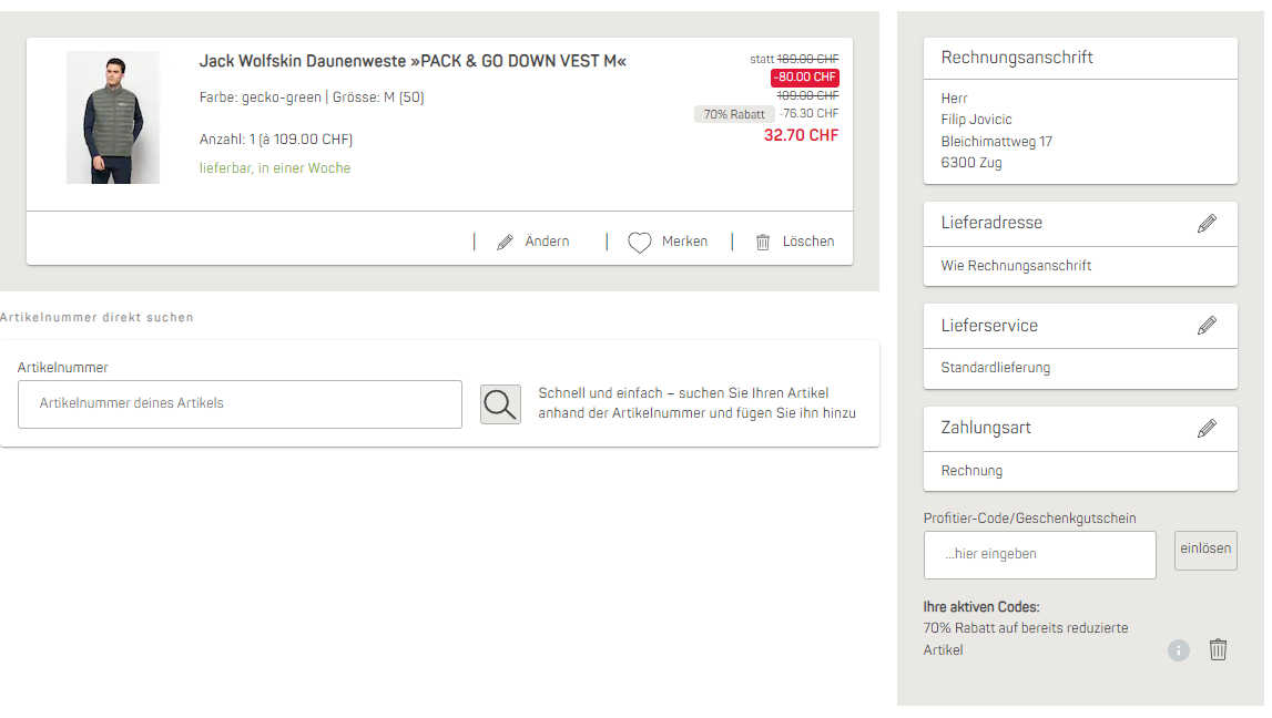 Bei Ackermann gibt es zurzeit wieder die Hammer 70% Aktion und viele neue Schnäppchen zu ergattern. Einer dieser Artikel ist die Jack Wolfskin Daunenweste »PACK & GO DOWN VEST M« zum Aktionspreis von CHF 32.70.-
