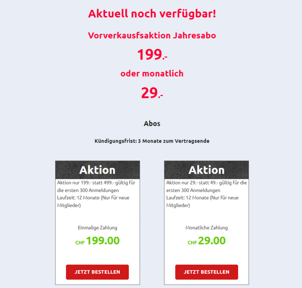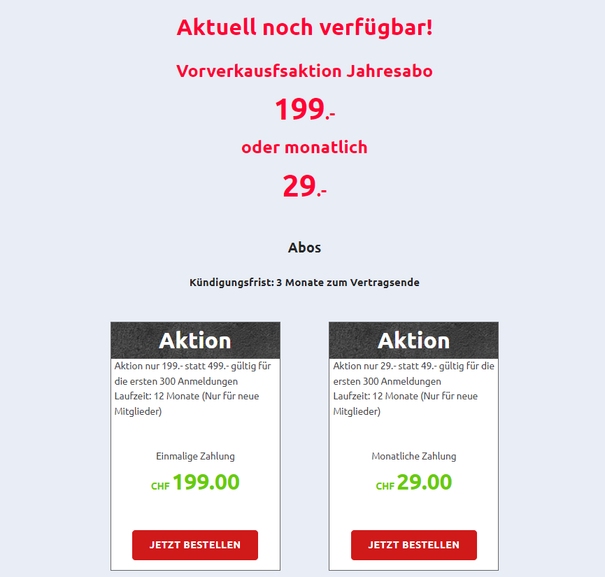 Sobald man ein Abonnement abschliesst direkt auf Ende Laufzeit kündigen. Unbedingt gleich schriftlich Bestätigen lassen bevor man den Vertrag unterzeichnet :)