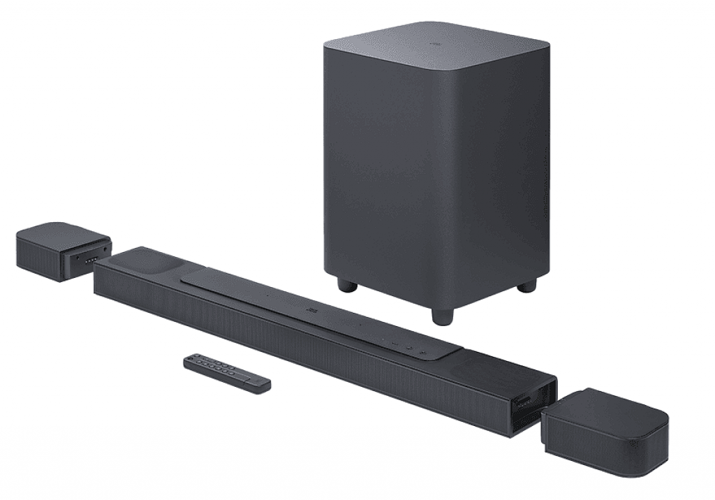 - Echter Surround Sound mit abnehmbaren Surround-Lautsprechern
