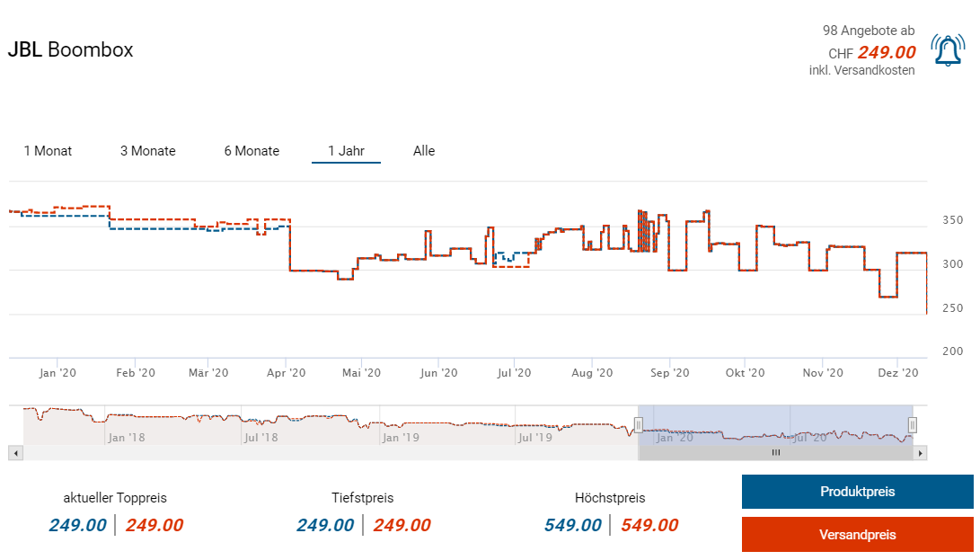 Bei digitec gibts derzeit die grossen mobilen Bluetooth-Lautsprecher Boombox von JBL zum Aktionspreis von 249 Franken. Laut toppreise soll dies scheinbar ein neuer Bestpreis sein.