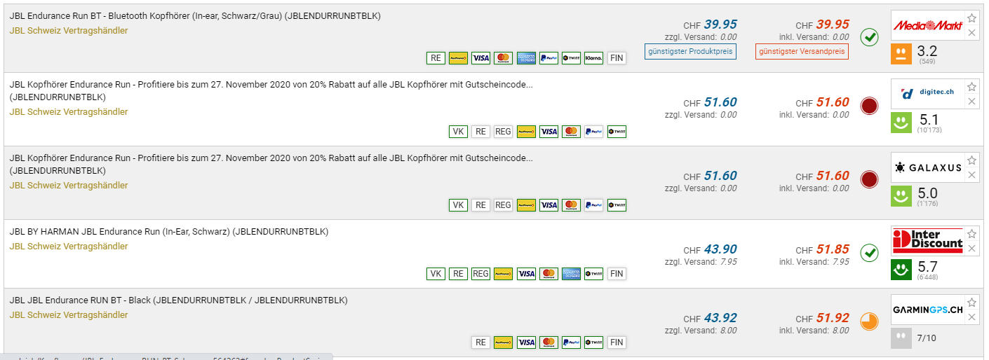 Bei Media Markt gibt es die JBL Endurance RUN BT Kopfhörer für den neuen Bestpreis von CHF 39.95. Der vorherige Bestpreis war CHF 46.90. Der zweitbeste Preis beträgt CHF 51.60.