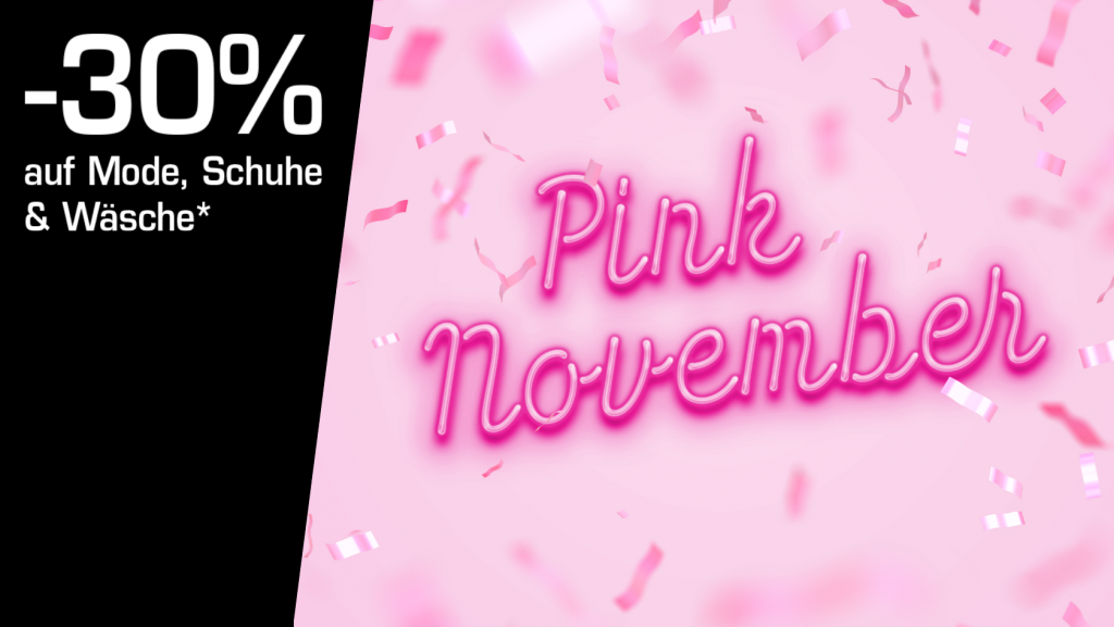 Die besten Deals im Pink November bei Jelmoli! Bis 27.11 gibt es satte -30% auf Mode, Schuhe & Wäsche. Jetzt klicken, Favoriten shoppen und sparen!