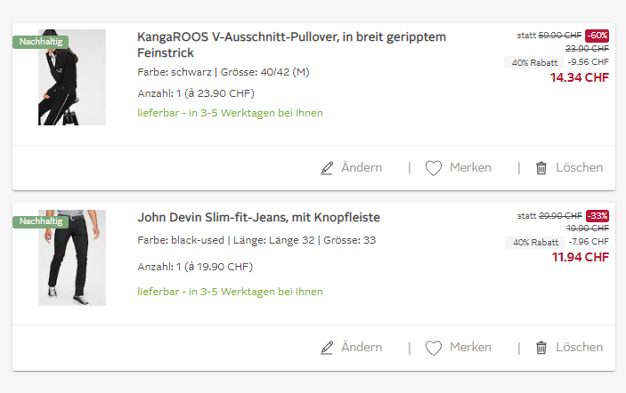 Na wer hätte das gedacht… Bei Jelmoli Versand gibt’s wieder einmal 40% Rabatt auf ein ausgewähltes Sortiment. Dieses Mal sind Pullover und Jeans an der Reihe!