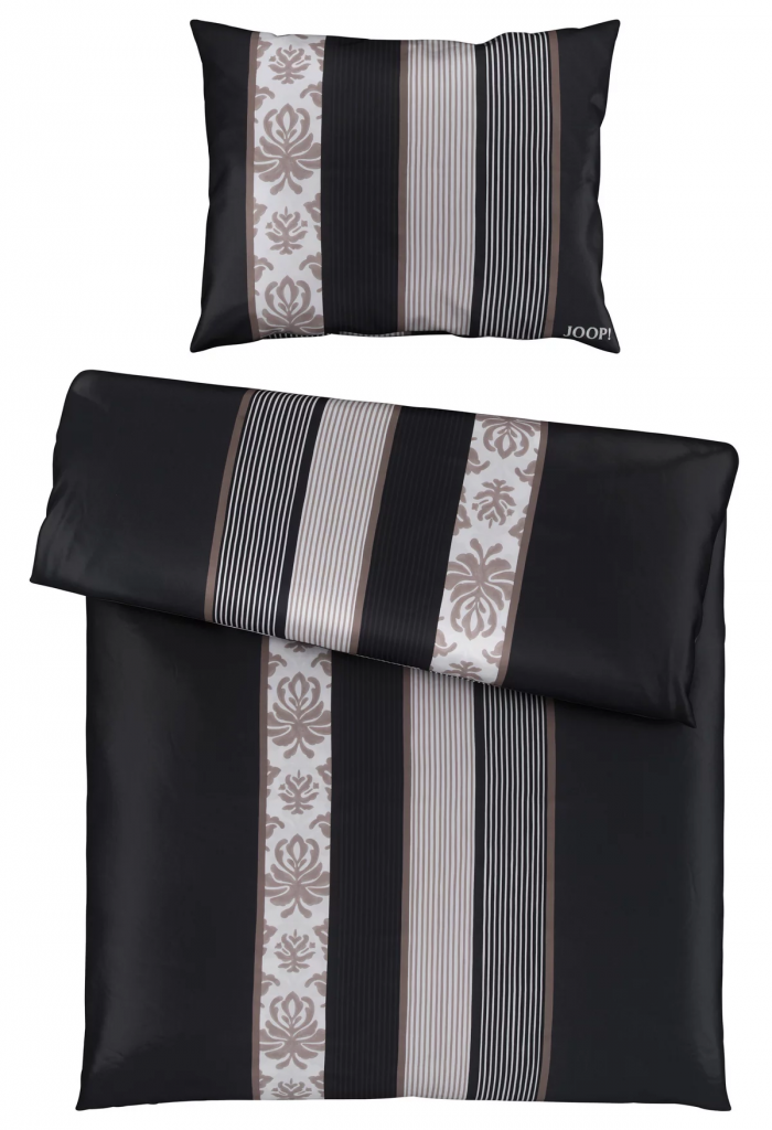 - Gestreifte, strapazierfähige und hautsympathische Garnitur mit Ornamenten, Kissenbezug mit weißem JOOP! Logo