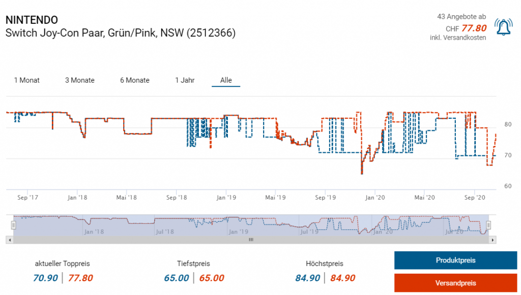 Bei Amazon gibts derzeit das Joy-Con 2er Set in Neon-Grün/-Pink zum Aktionspreis von knapp 64 Franken, Vergleichspreis für diese Farbe liegt scheinbar bei CHF 77.80. Ich denke, dass es am Black Friday aber sicher noch bessere Angebot dazu geben wird.
