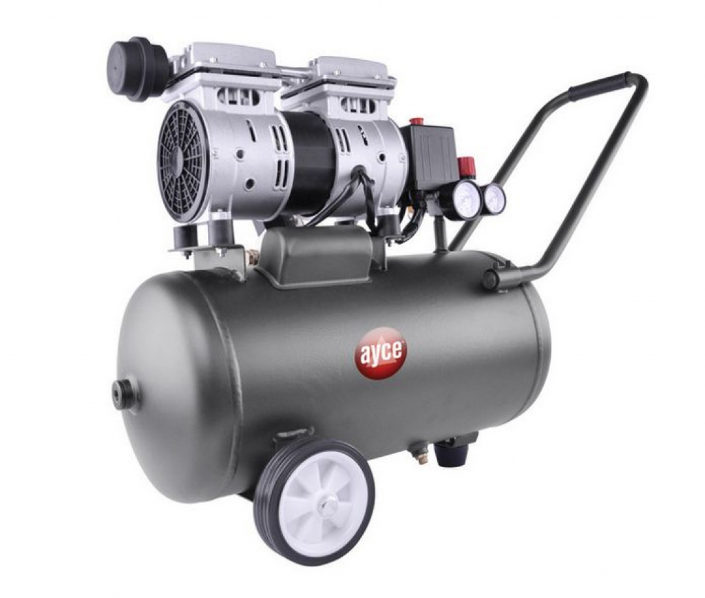 Vielseitiger Einsatz im Heim- und Handwerkerbereich, Besonders leiser Betrieb, Ölfrei und wartungsarm, U-förmiger Schiebegriff mit Gummigriffen, Mit integriertem Wärmeschutz