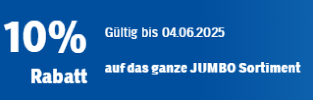 Bei Jumbo gibt es einen weiteren 10 %-Rabatt in der Supercard App auf das ganze Sortiment. Der Gutschein ist länger gültig als dieser Bon hier – er gilt bis am 4.6. und ist ohne Mindestbestellwert gültig.