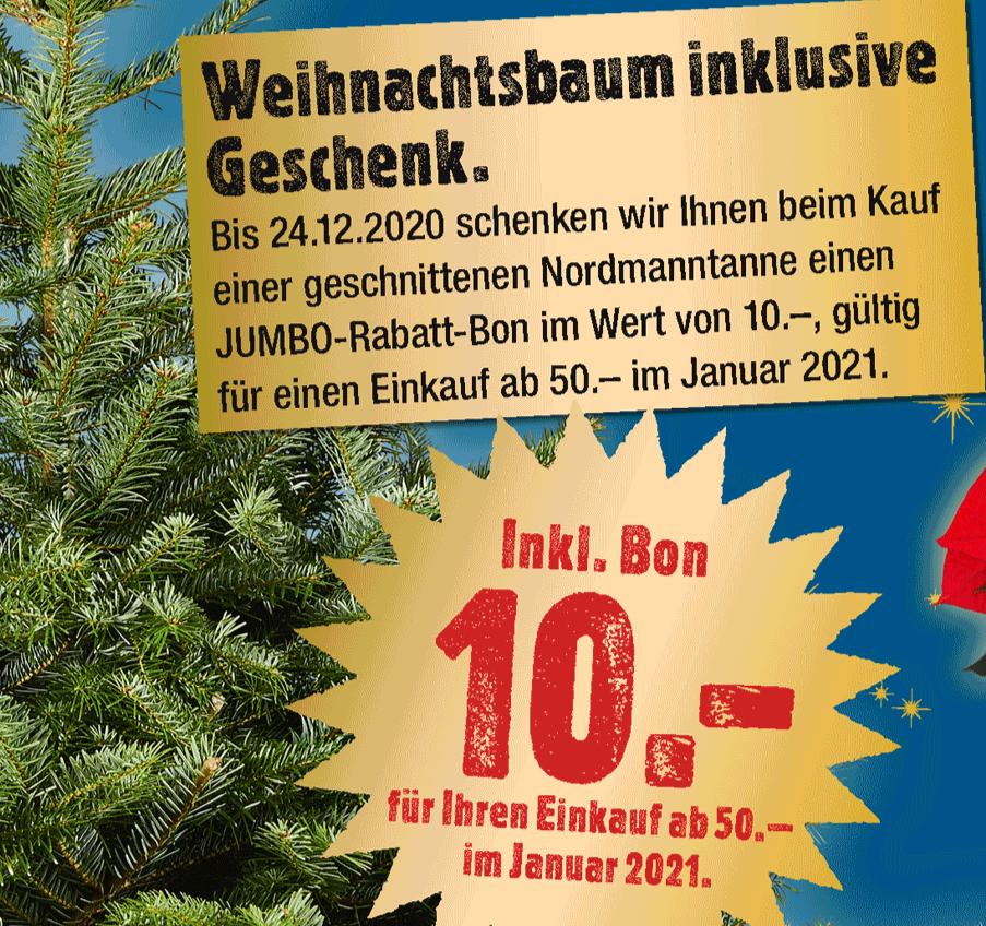Jumbo: CHF 10.- Gutschein geschenkt beim Kauf einer geschnittenen Nordmanntanne