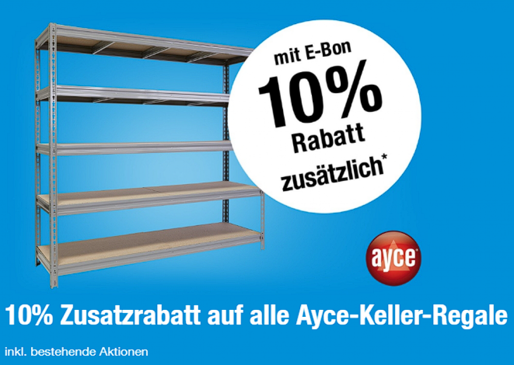 Bei Jumbo gibt es aktuell einen Gutschein für 10% Rabatt auf alle Ayce-Keller-Regale wie z.B. auf den ayce Metallschrank Universal. Dieser kostet mit dem Gutscheincode CHF 106.45 statt CHF 136.90. Damit ihr auf den angegebenen preis kommt, müsst ihr den Gutscheincode aus dem Deal eingeben.