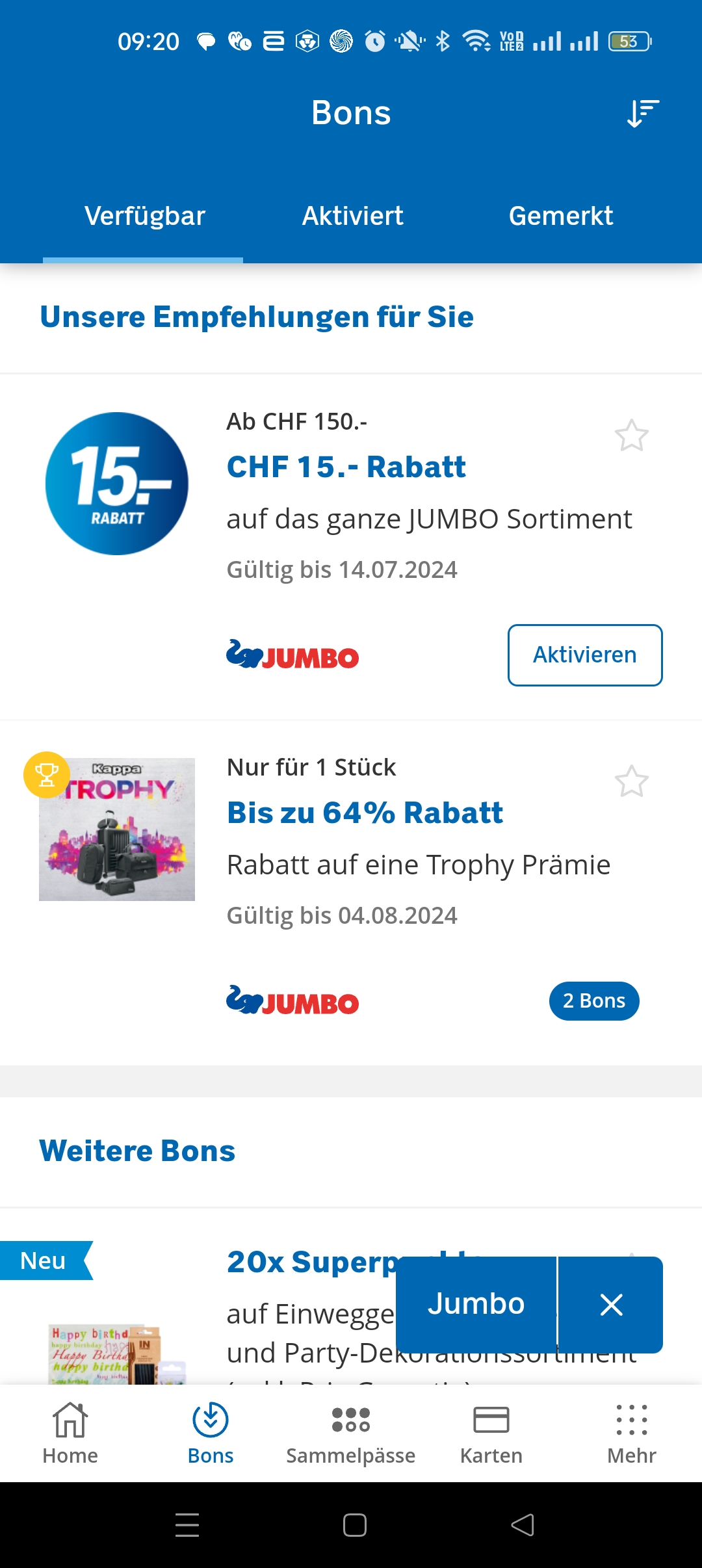 In der Supercard-App gibt’s aktuell wieder neue interessante Jumbo Gutscheine