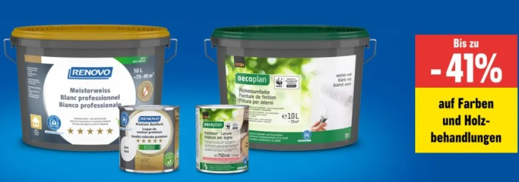 Reduziert sind unter anderem Wandfarben, Lacke, Lasuren, Öle und weitere Produkte zur Pflege und zum Schutz von Holzoberflächen. Die Angebote eignen sich perfekt, um Wohnräume aufzufrischen oder Holz im Aussenbereich langlebig zu schützen.