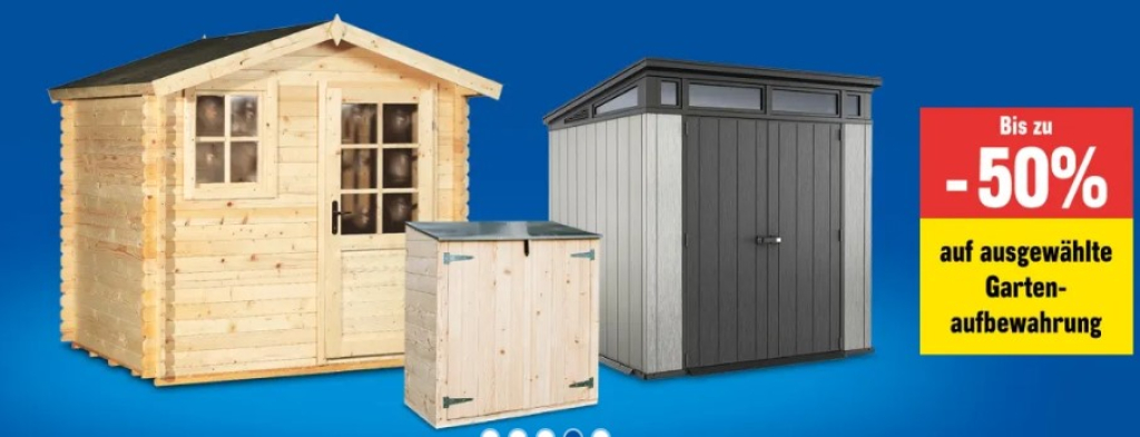 Die reduzierten Produkte eignen sich ideal, um Gartengeräte, Kissen oder Zubehör wettergeschützt und platzsparend zu verstauen. Der Rabatt gilt ausschliesslich auf ausgewählte Gartenaufbewahrungsartikel und nur solange der Vorrat reicht.