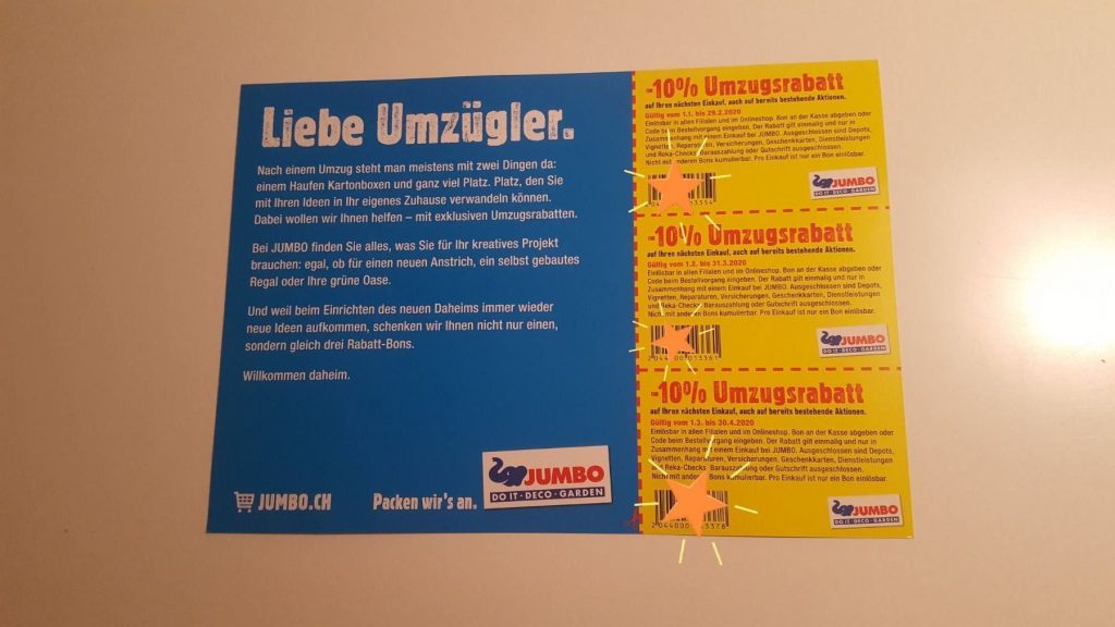 Eigentlich wäre der Bon für Personen, welche umziehen.