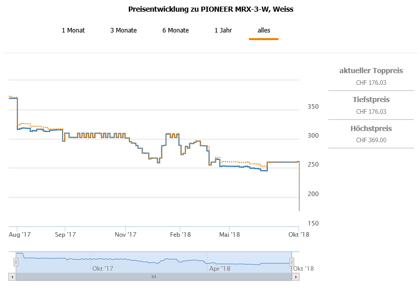 Gemäss toppreise gab es den Lautsprecher bislang nie günstiger als für 252.98 CHF, der zweitbeste Preis liegt aktuell bei 260.90 CHF.
