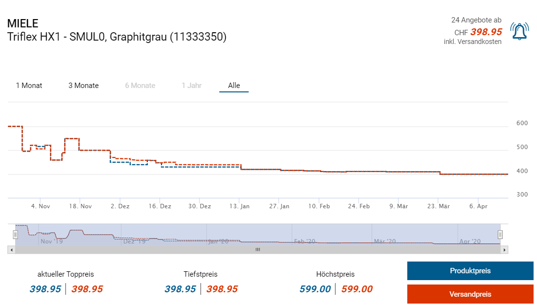 Bei nettoshop gibts gerade die Miele Triflex HX1 mithilfe des Gutscheincodes NETTO-15. Bei Fust könnt man ihn zwar sogar für 379 Franken erstehen, allerdings ist dort angegeben, dass der Cashback schon abgezogen ist, ich gebe deshalb digitec-galaxus als Vergleichspreis an.