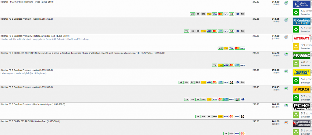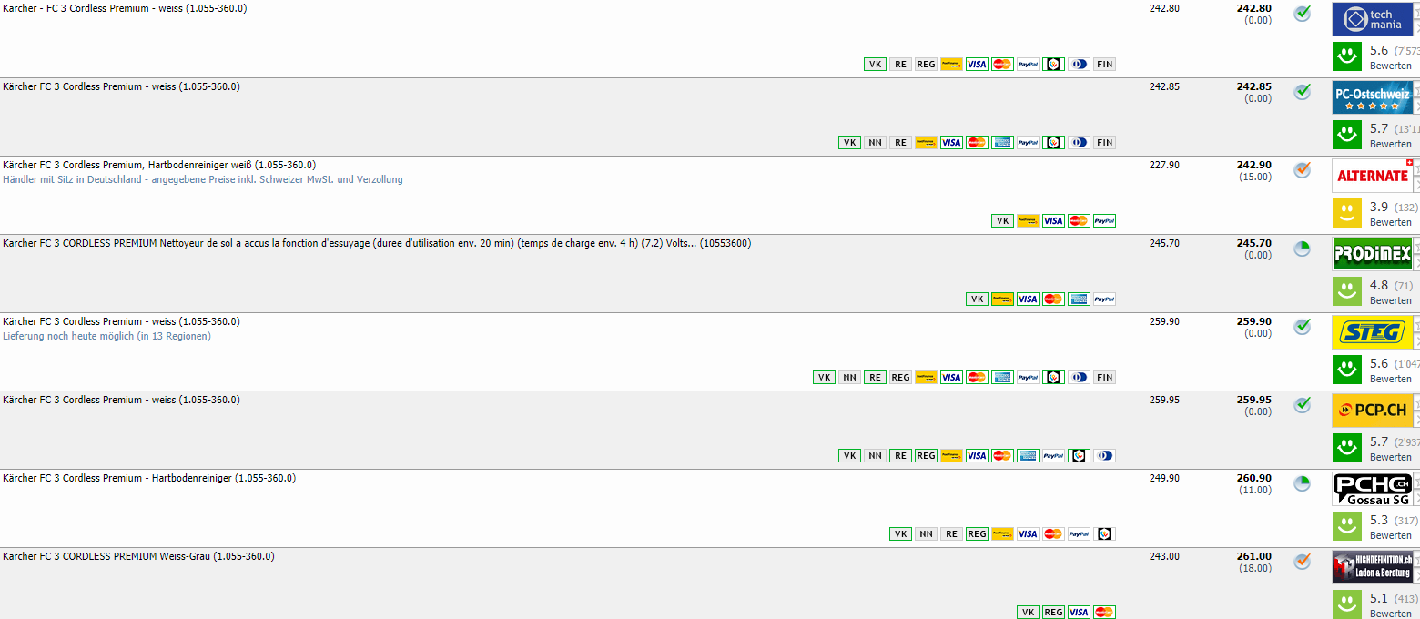 Galaxus bietet aktuell den Kärcher FC 3 Cordless Premium Hartbodenreiniger für nur CHF 220.-. Das ist laut toppreise.ch ein neuer Bestpreis für das Gerät, und der aktuelle Vergleichspreis von CHF 242.80 wird deutlich unterboten.
