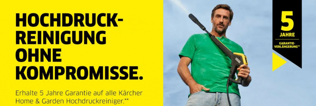 Bei Krächer kann man aktuell kostenlos die Garantiedauer seines Hochdruckreingers von 2 auf 5 Jahre erweitern. Gilt für alle Hochdruckreiniger der Home & Garden Serie.
