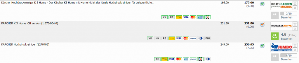 Bei Migros doit garden gibt’s gerade den Kärcher Hochdruckreiniger K3 Home für CHF 166.- Meldet man sich zum Newsletter an, erhält man einen kombinierbaren 10.- Gutschein (gleich wie bei melectronics). Damit kommt man auf einen Gesamtpreis von CHF 156.-