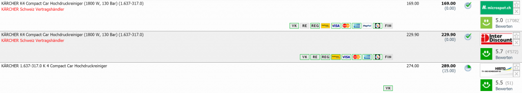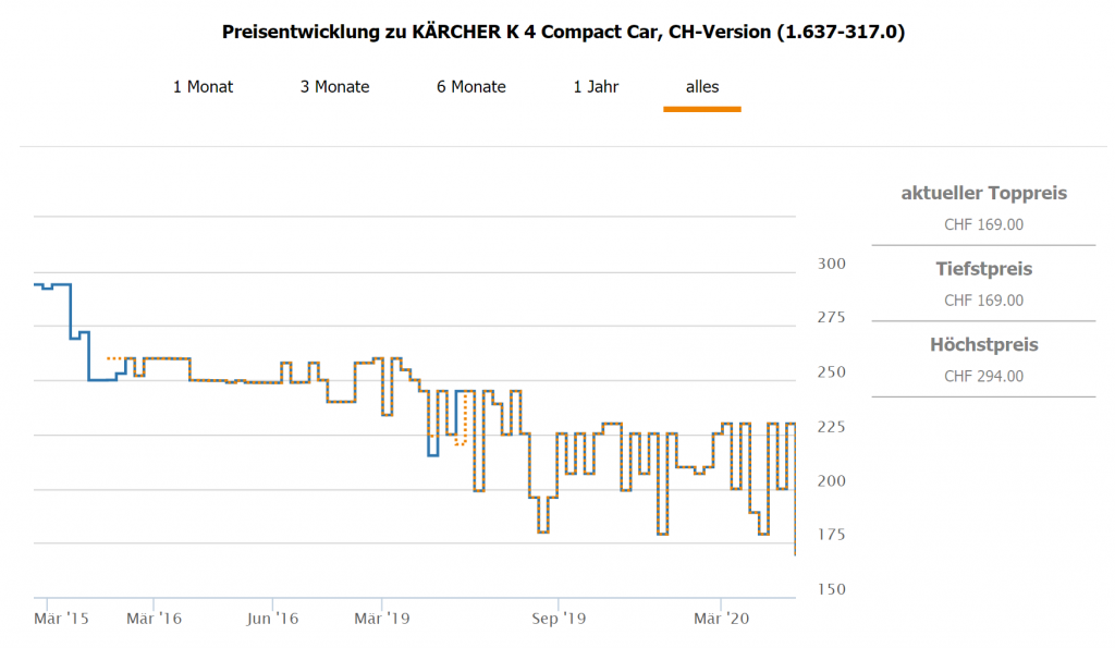 Bei microspot gibt’s den Hochdruckreiniger KÄRCHER K4 Compact Car momentan für CHF 169.- Zweitbester Preis liegt laut toppreise bei CHF 229.90 Günstigster Preis im Preisverlauf von toppreise war bei CHF 179.90