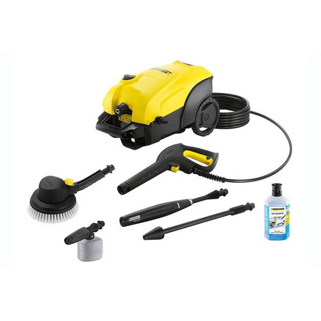 Leicht transportierbar, schnell verstaubar. Der Hochdruckreiniger K4 Compact Car mit Car-Kit und wassergekühltem Motor. Lieferumfang: Hochdruckpistole mit 6m Hochdruckschlauch. Vario Power Strahlrohr. Dreckfräser. 1 L Autoshampoo 3in1. Schaumdüse. Waschbürste rotierend.