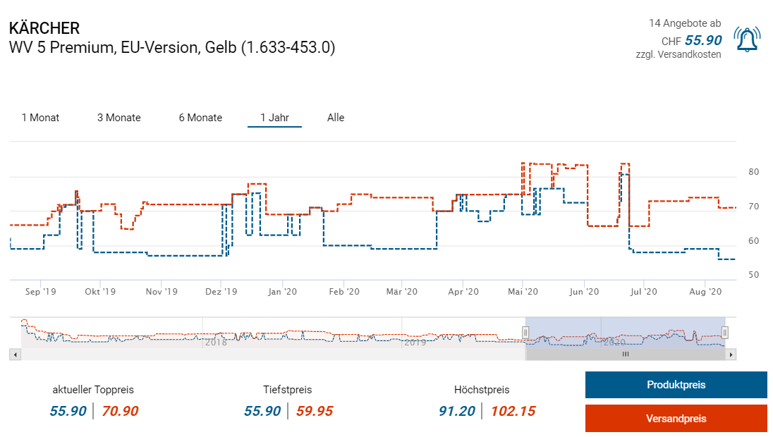 Bei Amazon gibts derzeit den Fensterwischer WV 5 Plus in Aktion für ca. 61 Franken. Laut toppreise liegt der zweitgünstigste Preis bei 69 Franken bei nettoshop. Galaxus verkauft zwar den WV 5 Premium (EU-Edition) auch vergünstigt für CHF 65.50, ich weiss aber nicht inwiefern sich die beiden Modelle unterscheiden, den Bildern nach zu urteilen sind sie jedenfalls identisch.