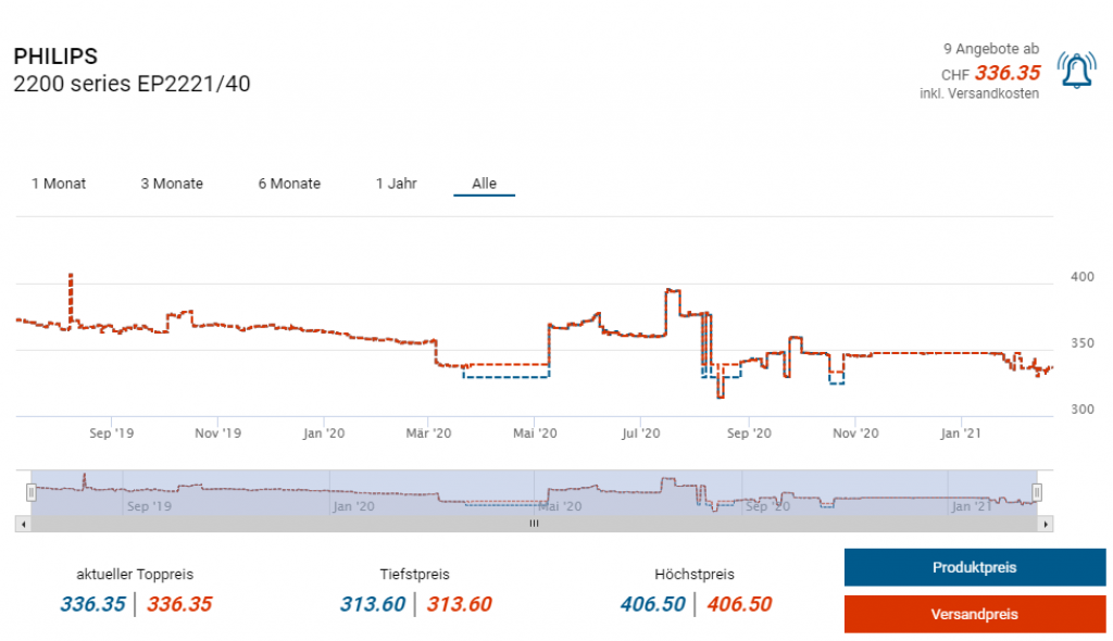 Bei Amazon gibts derzeit den Kaffeevollautomaten EP2221/40 von Philips zum Aktionspreis von 288 Franken inkl. Lieferung. Laut toppreise starten die Preise in der Schweiz bei CHF 336.35. Ich weiss leider nicht, ob die Maschine mit einem Schuko-Stecker ausgeliefert wird, anhand der Rezensionsbilder kann ich das jedenfalls nicht bestimmen.