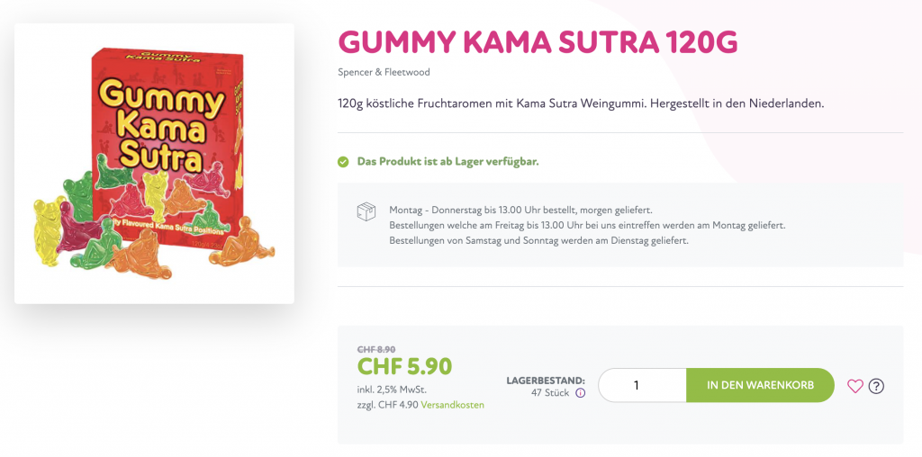 Bei Sweets.ch gibt es Kamasutra Gummibärchen von Spencer & Fleetwood im Black Friday Sale.