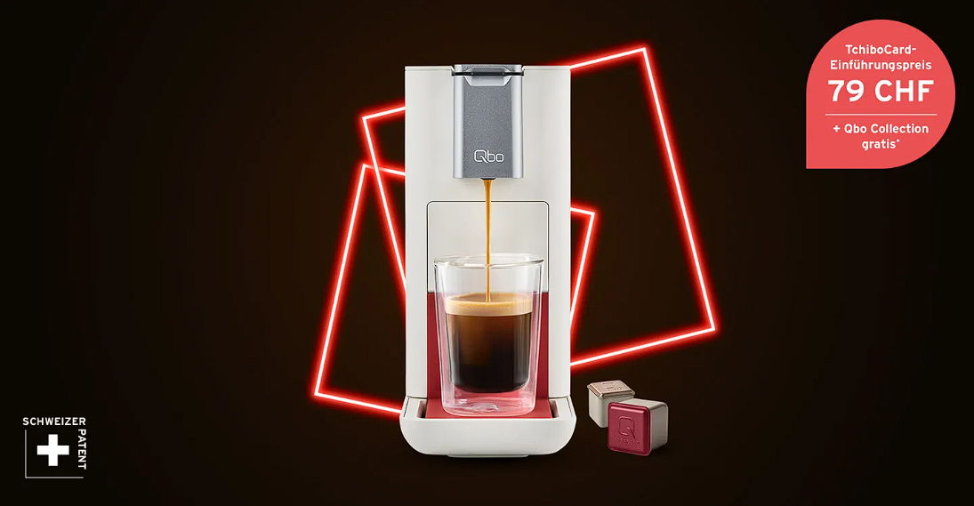 Mit der kostenlosen Tchibo-Card profitiert ihr zudem nur für kurze Zeit vom Einführungspreis von 79 anstatt 99 Franken, inkl. kostenloser Qbo Collection mit insgesamt 30 Kapseln à 15 verschiedenen Sorten.