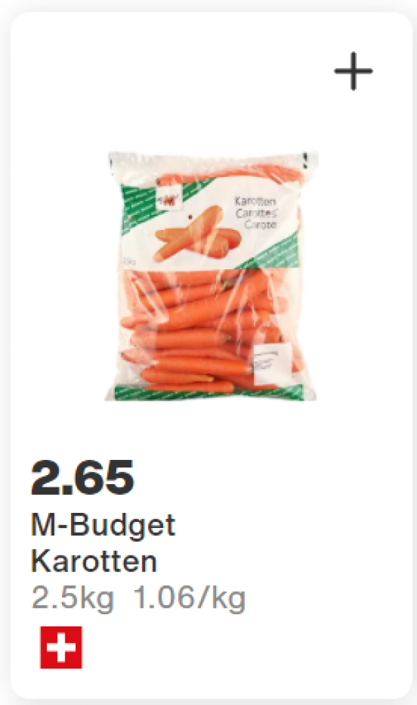 Aktuell erhält man bei Coop in der 1+1 Aktion Karotten somit für CHF 0.90 pro Kilogramm, gilt jedoch nur wenn man min. 2KG kauft. Bei Migros kostet das Kilo z.B CHF 1.60 (oder CHF 1.06 wenn man 2,5KG kauft). Die Aktion läuft noch bis Samstag, 17.04.2021. Hier geht’s zu allen 1+1 Aktionen. Wer direkt nach Hause bestellen möchte, unbedingt noch vorher die Gutscheinsektion beachten. Vielen Dank an Moni für den Tipp 🙂